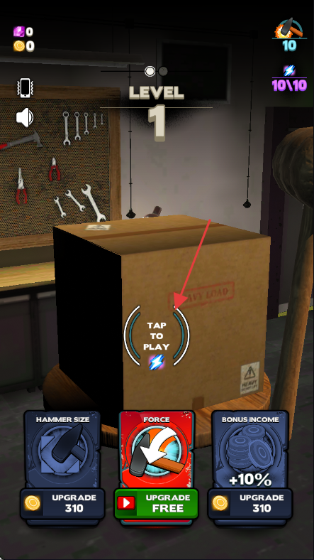 1、进入【LEVEL1】,点击箱子上的【TAP TO PLAY】开始。