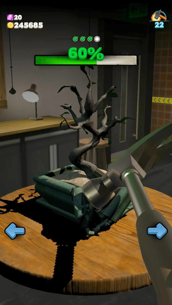 2、锤子升级破坏升级:通过赚取金币可升级锤子,提升破坏力以击碎更坚硬物体,从基础木锤到强力金属锤的成长路径,让玩家感受明显的能力提升。