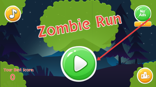 1、点击界面按钮,加载后进入以小僵尸为主角的闯关场景,开启冒险之旅。