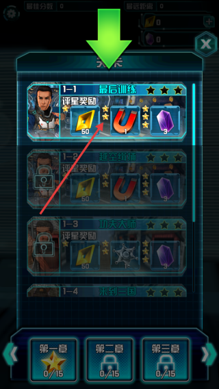 1、在关卡选择界面,点击如【1-1最后训练】关卡,查看【评星奖励】,明确目标后开始游戏。