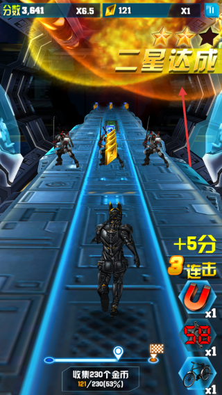 3、多元模式玩法:“关卡模式”以剧情推动跑酷,融入机甲BOSS战等影视化场景;“无尽模式”考验生存能力,可解锁多人载具增强火力,满足不同玩家的挑战偏好。