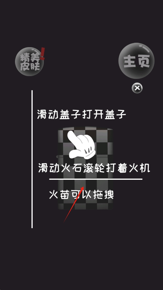 1、基础点火玩法:通过手指在屏幕上滑动、按压等操作模拟擦拭动作,控制打火机点火,感受真实点火过程。