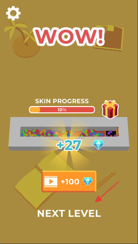 3、完成当前关卡出现【WOW!】提示后,点击【NEXT LEVEL】按钮,进入下一关继续游戏。