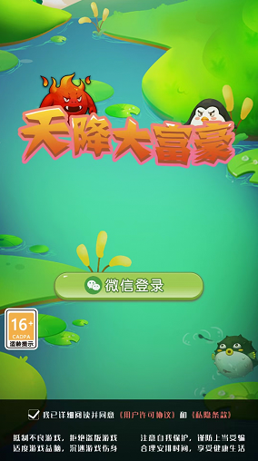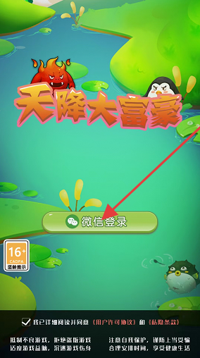1、打开游戏后点击带绿色微信标识的【微信登录】按钮登录,开启游戏之旅。