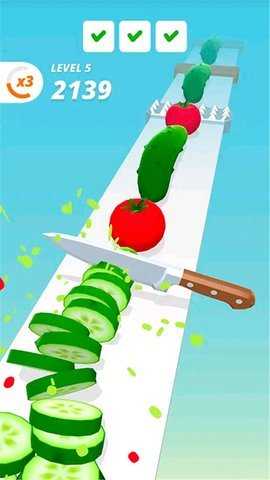 1、指尖滑动流畅操作:通过指尖滑动屏幕操控刀具,轻松完成单切、斜切、连切等动作,操作反馈灵敏流畅,仿佛真实握刀切割,精准的手感让玩家可尽情享受切割的爽快感。