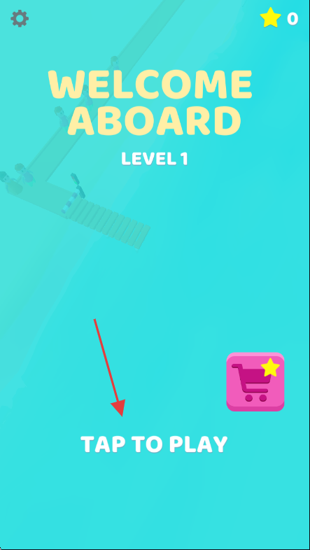 1、进入游戏界面,看到【WELCOME ABOARD】和【LEVEL1】,点击【TAP TO PLAY】开始第一关游戏。