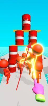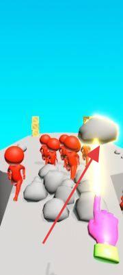 1、游戏开始后,玩家操控粉色手指,指引红色小人移动,可通过点击屏幕来规划行进路线,避开路上如石块等障碍物,确保小人顺利前行。