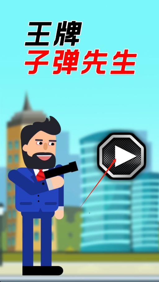 1、打开王牌子弹先生,点击播放按钮,进入充满挑战的射击冒险场景。