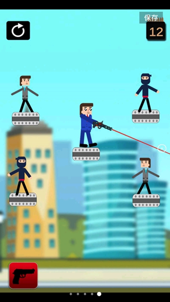 1、角度精准计算:观察关卡地形与敌人站位,滑动屏幕调整射击角度,预判子弹飞行轨迹,利用墙壁、道具等制造反射效果,以“曲线救国”方式命中隐藏敌人。
