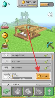 2、游戏推进可选择建造更复杂建筑结构如“FISHINGBOAT”等,每个建筑有对应金币花费如1.4K,满足条件点击建造,已建建筑可升级,合理规划金币使用。