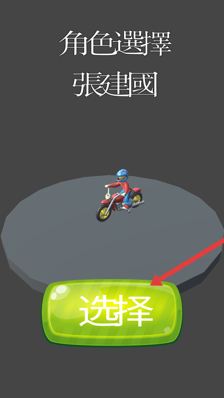 1、进入骑着摩托车回家过年的角色选择界面,点击【选择】确定使用张建国角色开启游戏。