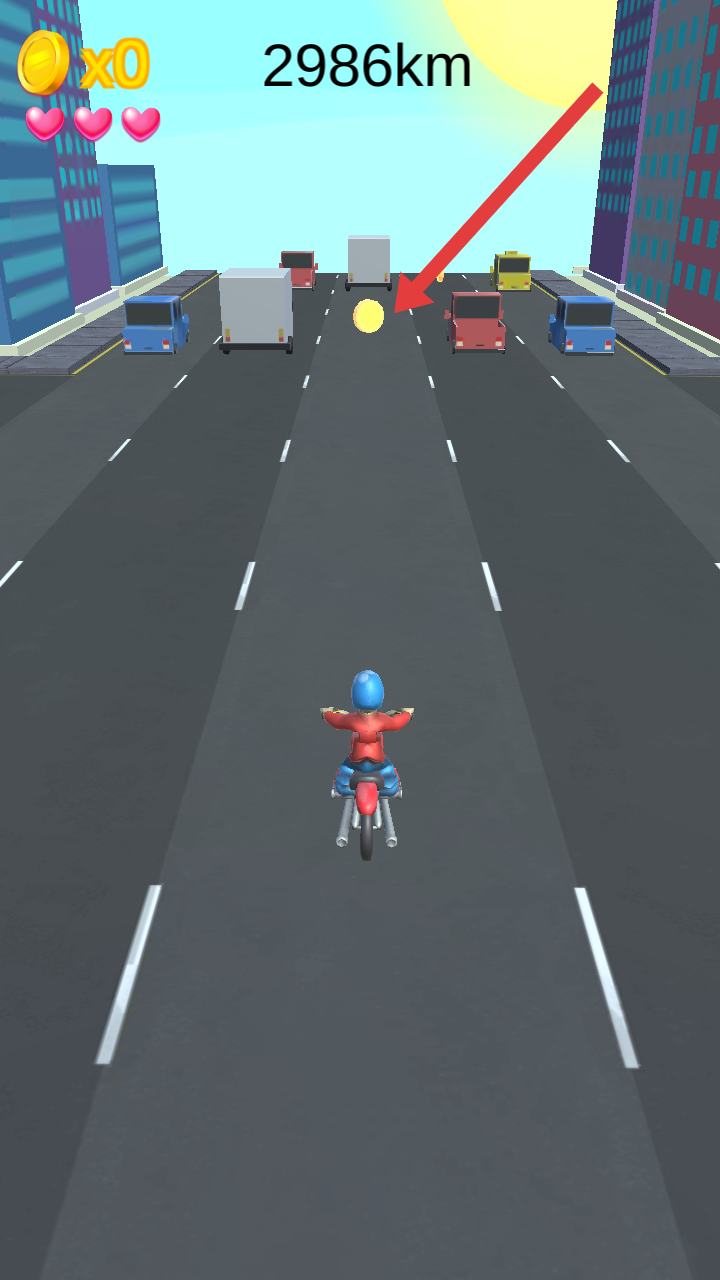 2、简单易上手操作:玩法简单便捷,通过左右滑动即可对摩托车进行移动控制,无需复杂操作即可上手,适合各年龄段的操控者快速体验。