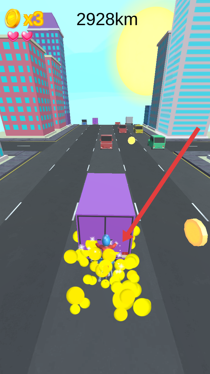 3、遇到如紫色的车辆等障碍时,需要合理操作,进行突破并获取大量【金币】提升分数。