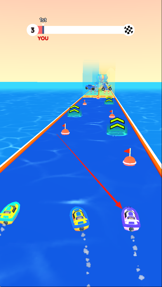 2、技能系统:通过收集赛道道具解锁主动技能,如范围攻击、护盾防御、干扰对手等,合理搭配技能应对不同类型对手与赛道。