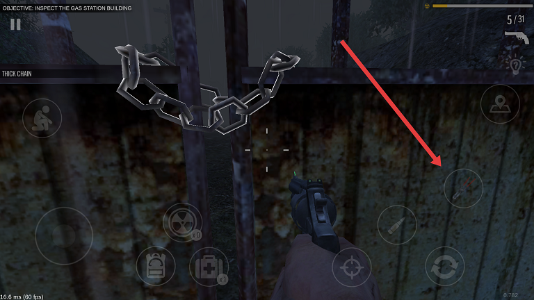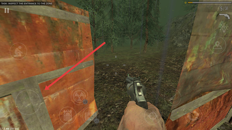 1、下车后直接往前面走,有到红色的铁门,靠近推开它进入地图。