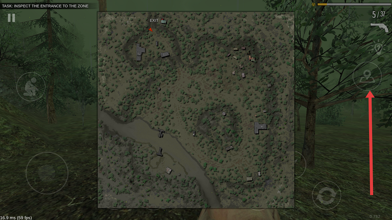2、点击右边查看地图,朝着有房子的地方去搜集线索和道具。