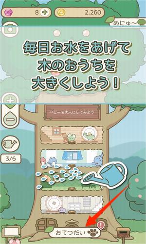 2、在游戏中,每日为大树浇水,帮助大树成长,解锁树屋中不同小动物居住的空间。