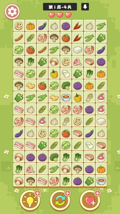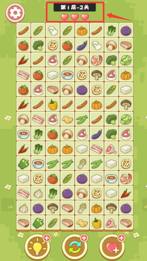 1、经典模式考验眼力,在6x8的方格中寻找三个及以上相同果蔬连接消除,每关设有不同目标要求,时间压力适中,既紧张又不至于焦虑。