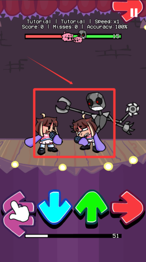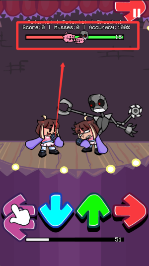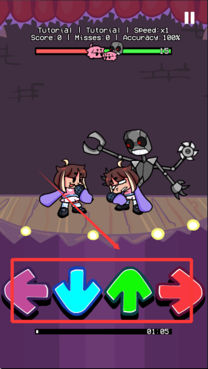 2、独特角色设定,主角QT是与男友相伴的可爱形象,实际为机器人设定增加趣味性,超百首FNF歌曲库,满足不同玩家的音乐喜好。