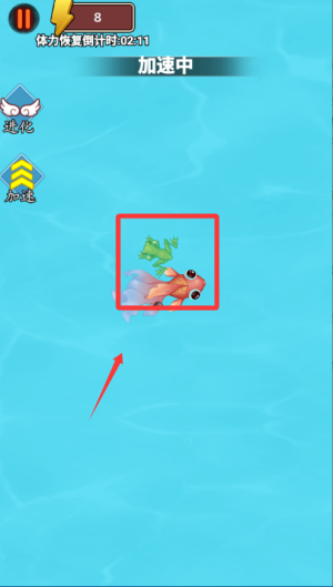2、中期进化成小鱼后,可以尝试吞噬同类生物。注意保留加速技能能量,遇到危险时快速脱离。