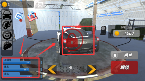2、特殊车辆如警车具有独特技能,警车可使用短暂加速。根据赛道特点选择合适车辆,城市赛道选灵活车型,直线赛道选高速车型。