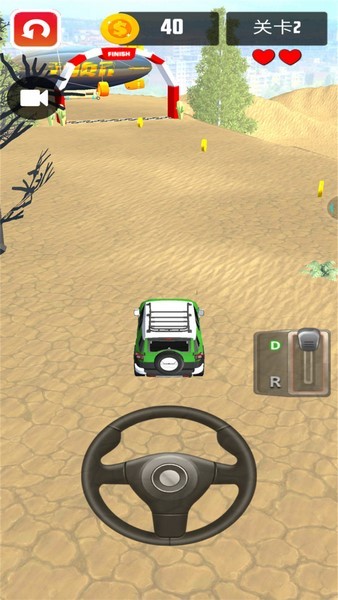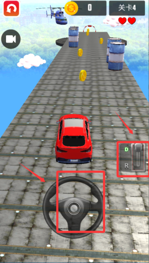 1、先熟悉操作,方向盘控住方向,松开就是刹车,右边可以控制倒挡和前进挡。