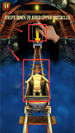 2、遇到障碍物要提前反应,高障碍物跳跃,低障碍物下滑。特殊路段需要倾斜手机控制矿车移动,保持平稳操作避免撞墙。