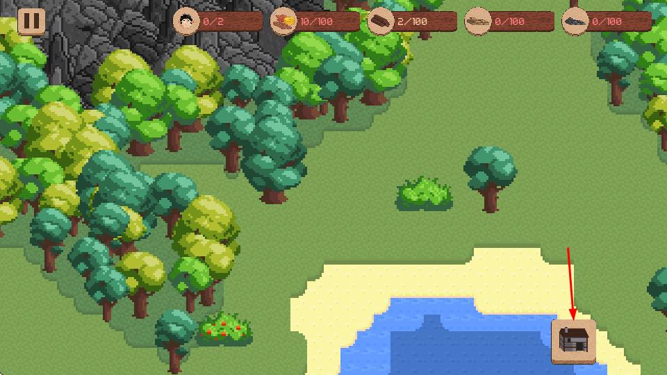 2、诞生在村庄边缘,跟随指引图标找到工具箱,点击获取木斧、木镐,学习砍伐树木、挖掘石块等基础资源采集操作。