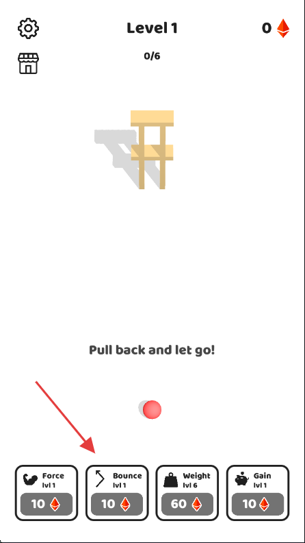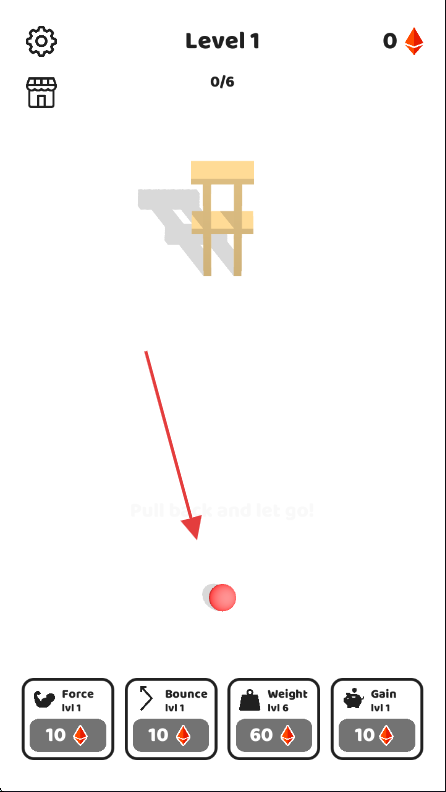 1、进入【Level1】,操控红色小球,按提示拉动调整方向发射,瞄准上方目标。