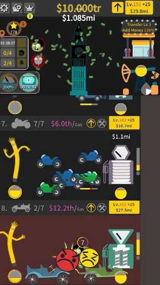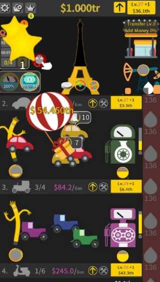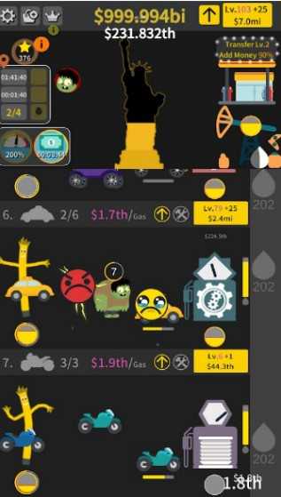 3、继续经营,资金达到时,按箭头指引点击车辆图标,升级或购买车辆,进一步推进游戏,解锁新内容。