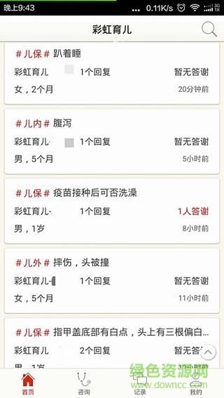 彩虹育儿app是一款在线解答孩子疾病问题的手机应用,百位医生在线解答,让寻医变得非常简单。更有海量育儿小知识日常更新,是孩子健康成长的一大保障。欢迎大家在绿色资源网下载体验。