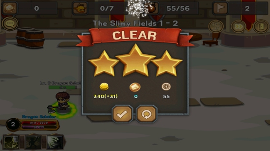 3、成功通关后,查看获得的星级评价(如三颗星)和奖励,可选择继续下一关或重复挑战。
