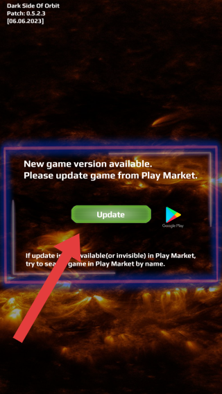 2、提示玩家从PlayMarket更新游戏,存在新游戏版本,需点击【Update】按钮进行更新,方可进入游戏。