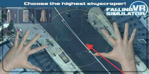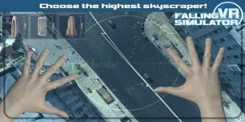 2、进入【Falling VR Simulator】环节,按提示选择最高的摩天大楼,体验虚拟跳楼的刺激感,感受惊险的坠落过程。