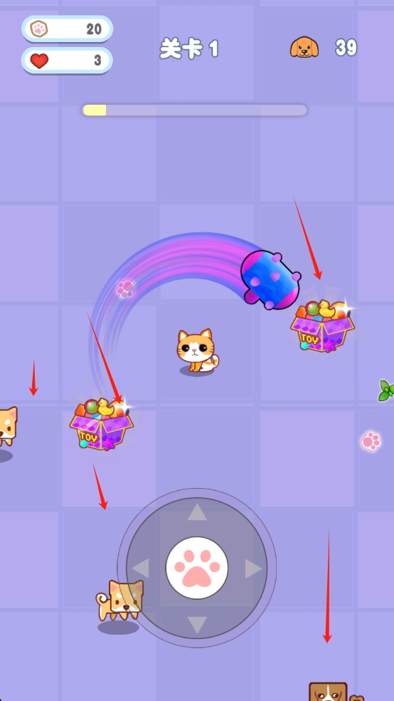 3、多元道具系统:包含加速鞋、隐身衣等多种道具,合理拾取使用可助力玩家轻松应对小狗围堵,增加游戏策略性。
