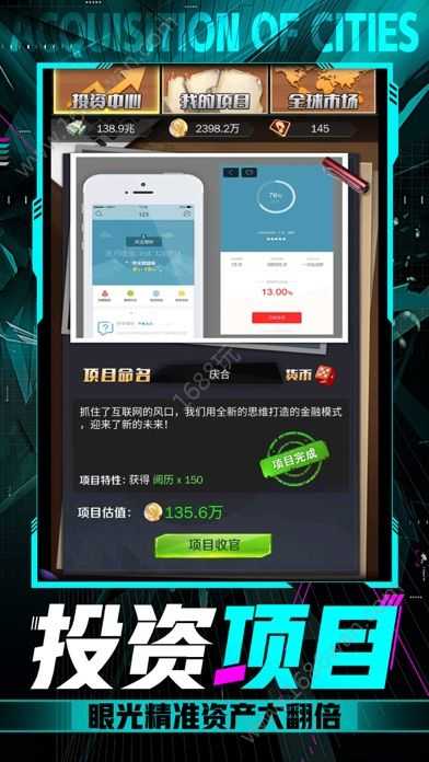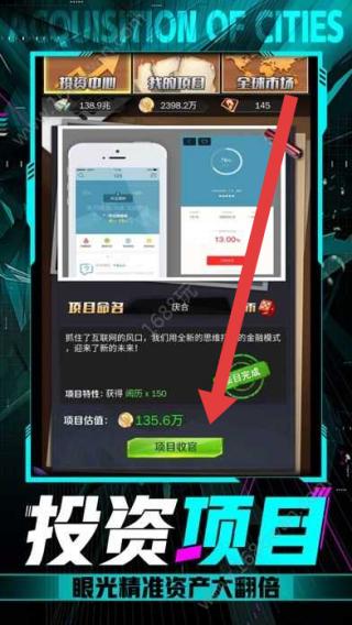 3、当大楼项目达到预期收益目标时,点击【项目收官】按钮结算利润,获取资金用于新一轮投资或升级操作。