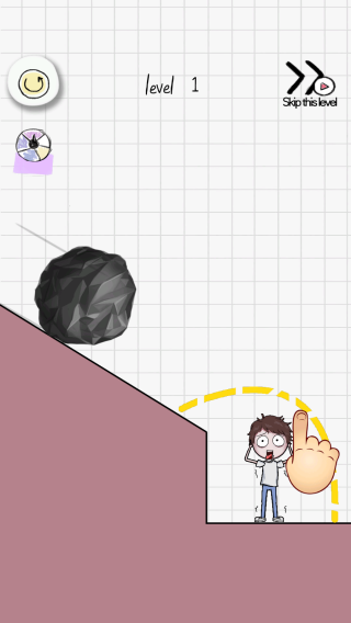 2、图片展示的是画线解谜类的关卡界面(Level1),玩家通过绘制线条(如黄色虚线提示区域)保护下方角色,避免被上方滚落的石块伤害。