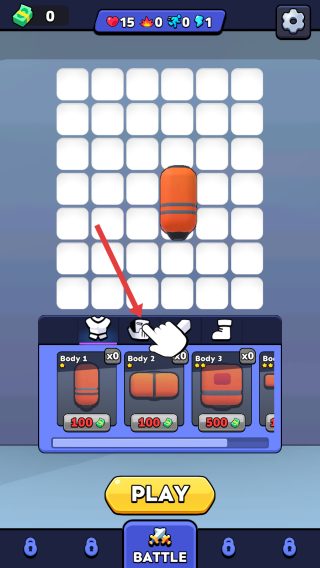 1、开局优先选择价格为100金币的【Body1】装备,增强角色基础实力以应对游戏挑战。