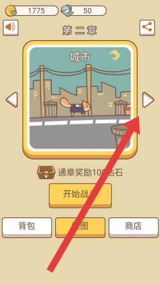 1、点击界面章节切换按钮,可以浏览不同章节内容,选择目标章节开启挑战。
