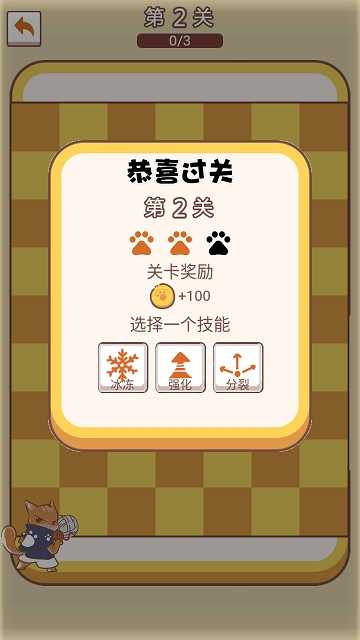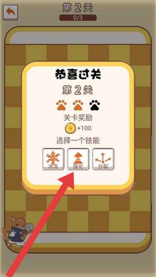 2、完成关卡后进入技能界面,根据通关奖励和策略需求,挑选技能进行升级强化。