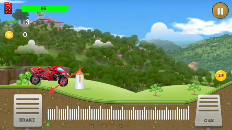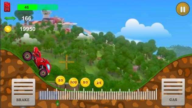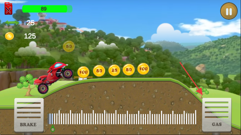 3、行驶中收集金币,利用油门和刹车技巧,顺利通过起伏地形,获取更多金币。
