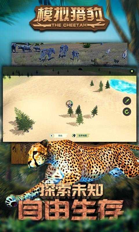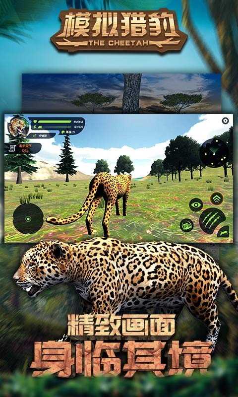 模拟猎豹是一款以3D高清画面呈现的猎豹生存模拟作品,玩家将化身为非洲热带草原上的猎豹,在逼真的原始森林场景中体验真实的野外生活,不仅要哺育幼子、寻找伴侣,还要时刻关注生命值饥饿值口渴值能量值等生存状态,在弱肉强食的生态中展开惊险刺激的冒险。