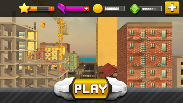 1、进入【悬浮滑板狙击手】游戏主界面后,点击【PLAY】按钮开始游戏,正式开启冒险。