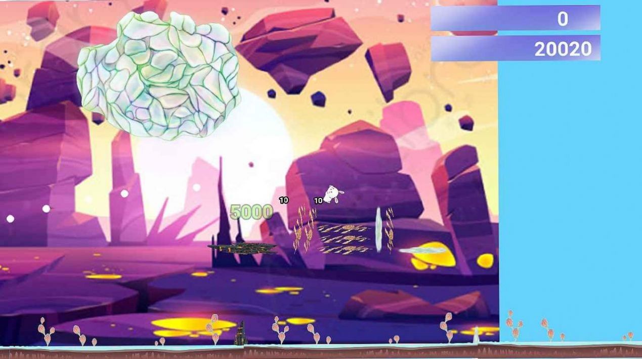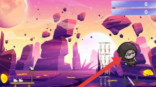 1、画面呈现出卡通风格的奇幻场景,有戴兜帽的角色,背景是紫色岩石、漂浮石块和星球等元素,角色处于充满奇幻色彩的环境中,涉及操控弹弓发射物体攻击目标。