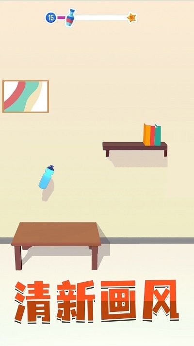 1、极简操作玩法:仅需点击屏幕这一简单操作,就能操控小瓶子飞行,易于上手,适合各年龄段玩家轻松体验。