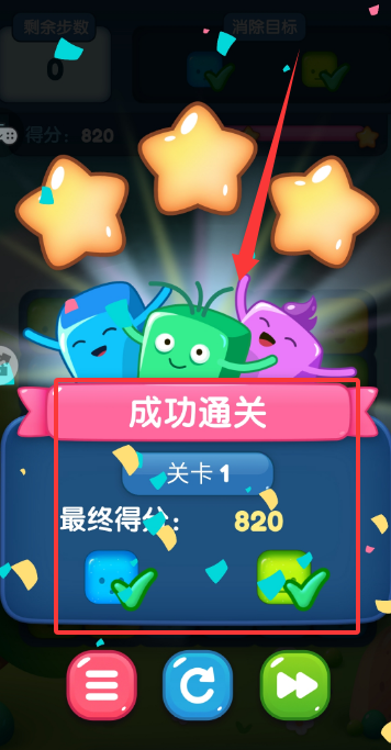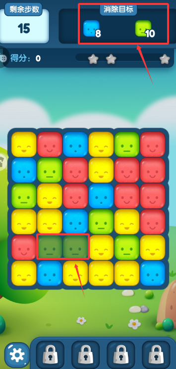 2、实现消除目标,用手指滑动连接相邻的相同图案实现消除效果。