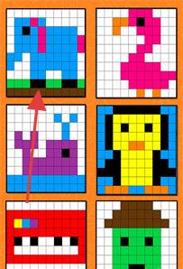1、在像素填色模式下(如图像中像素画示例),玩家可选择不同的像素图案(如动物图案)。