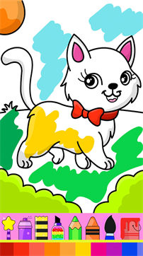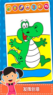 2、在卡通填色模式中(如小猫、鳄鱼图案),玩家面对已勾勒好轮廓的卡通形象,通过点击下方色彩工具。