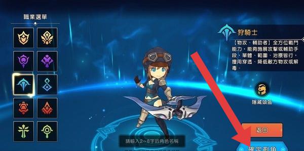 1、在职业选择界面,选择【狩魔士】职业,输入2-8字角色名称后点击确定创建,开启游戏冒险。