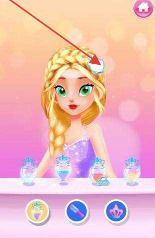 1、在游戏界面中,按箭头指示点击角色头发上的工具图标,打开头发护理相关选项。